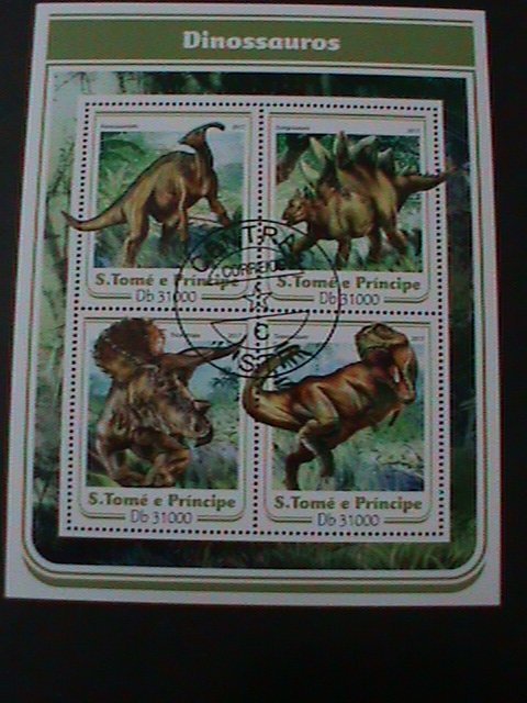 ST. THOMAS- 2017- PREHISTORY ANIMALS-DINOSAURES-CTO-LARGE SHEET VF LAST ONE