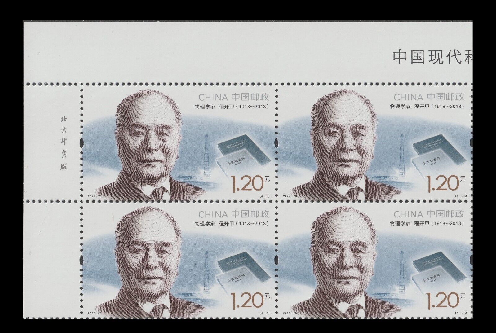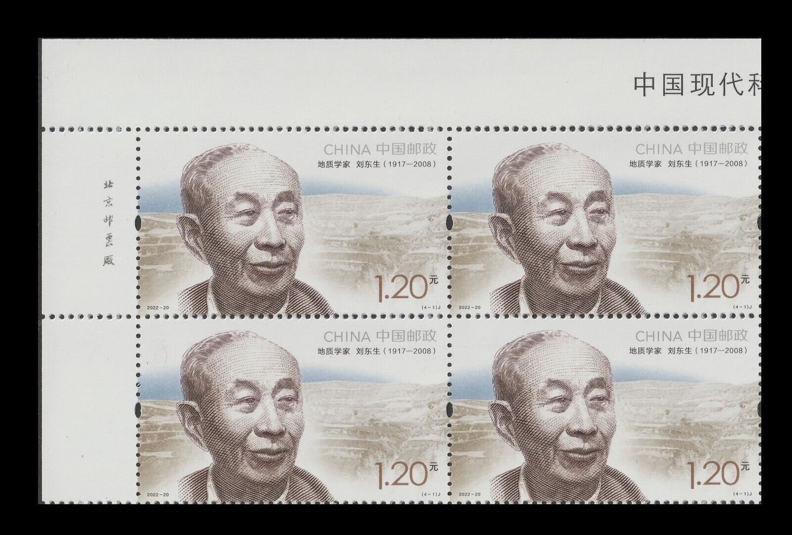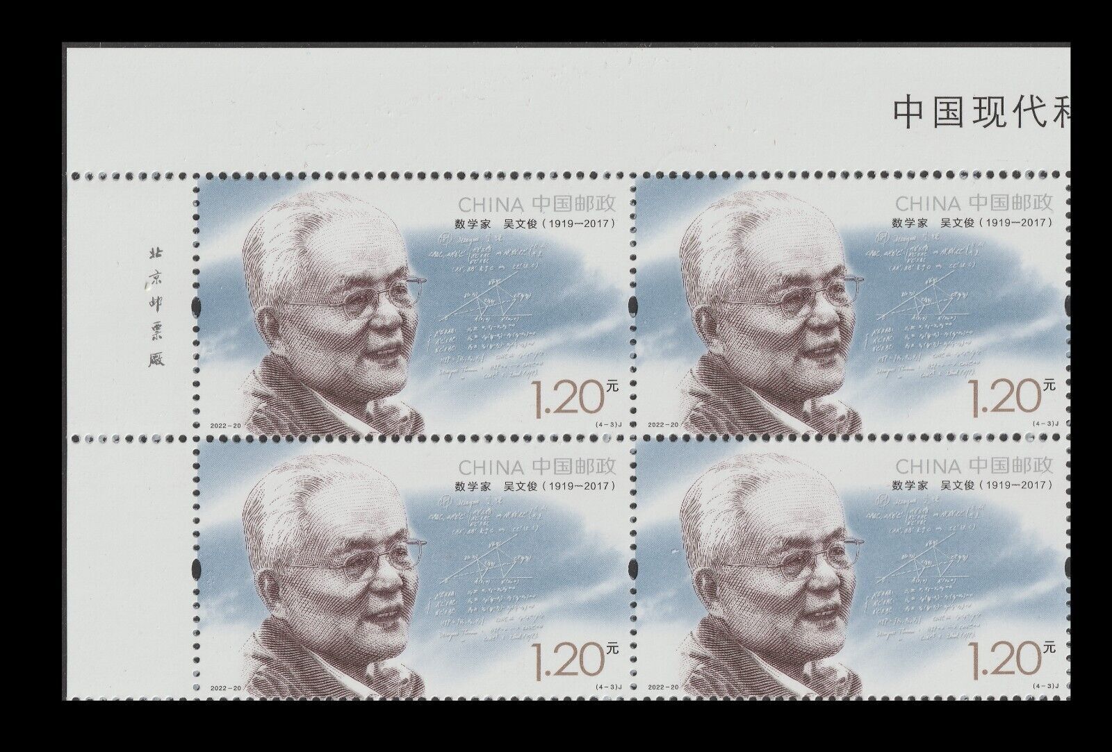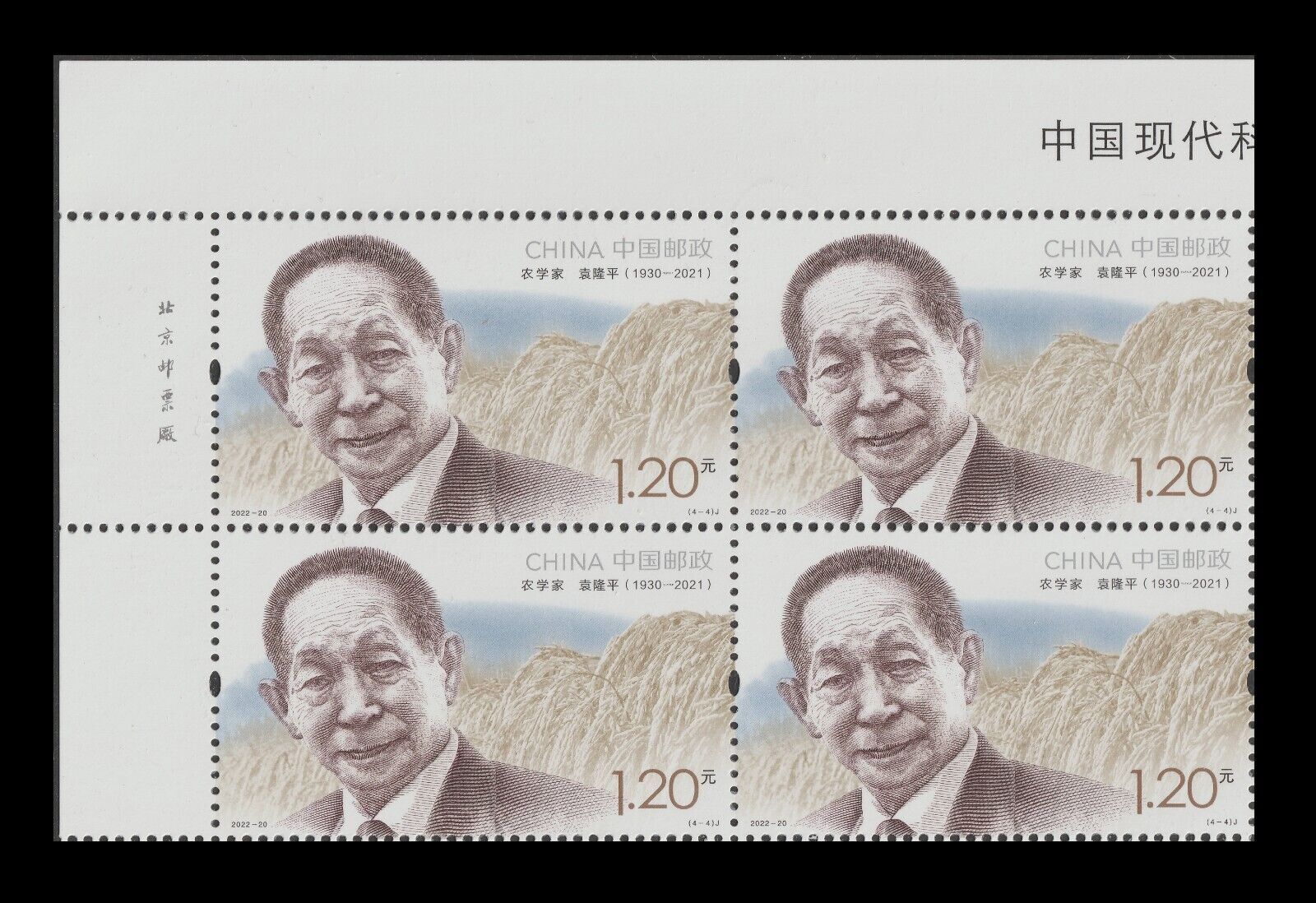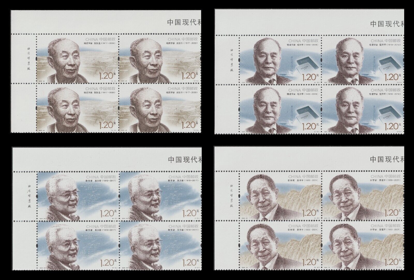 China 2022-20 Modern Scientists IV 中国现代科学家(九) imprint block UL set 4x4 MNH