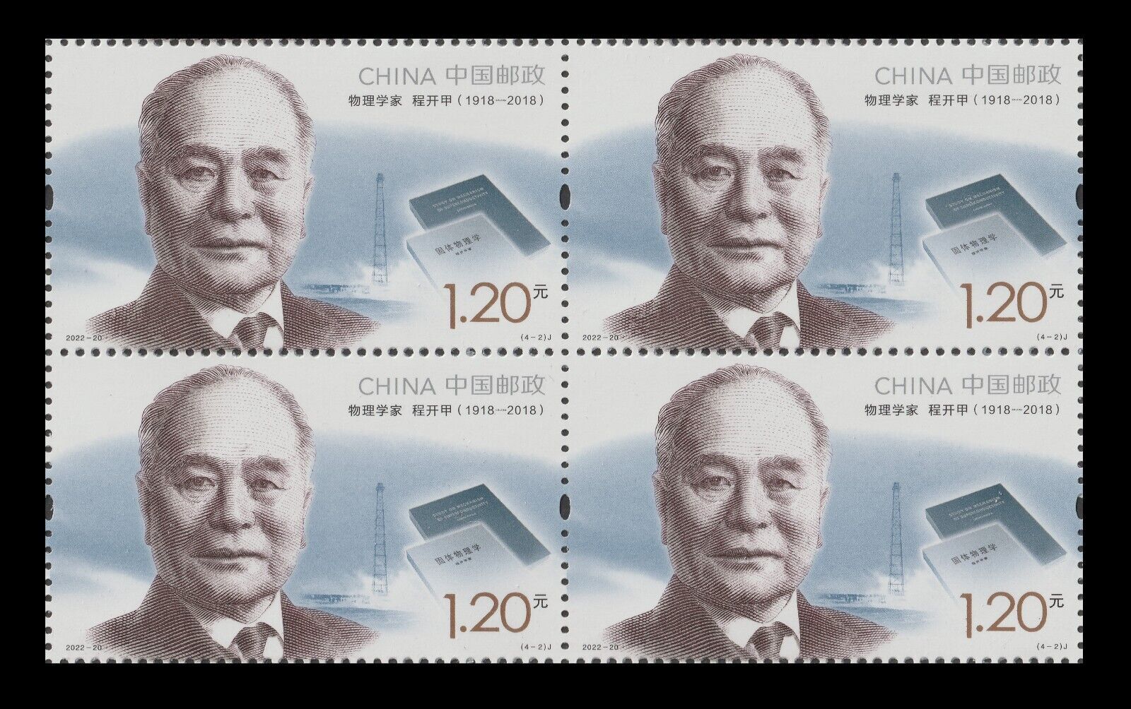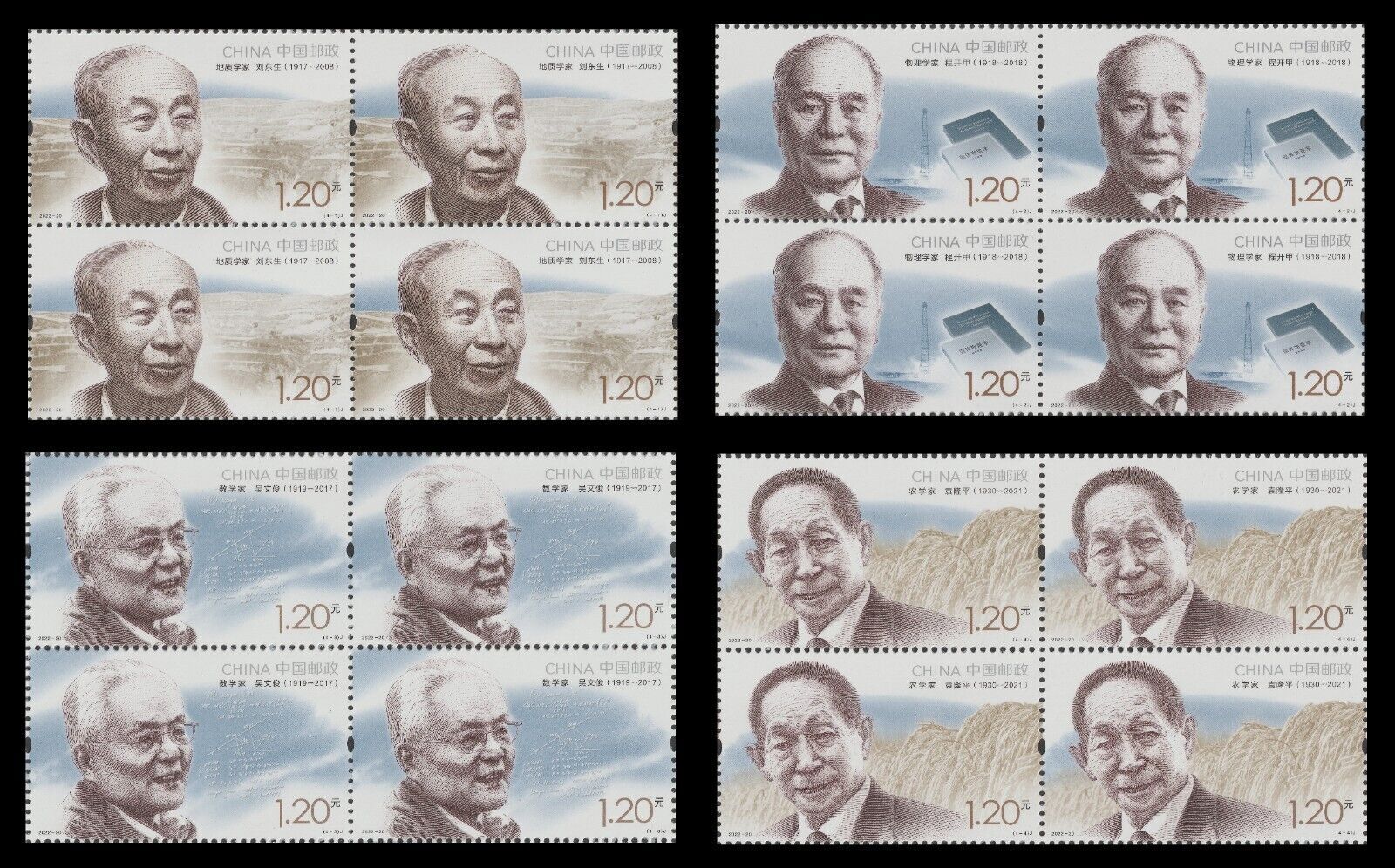 China 2022-20 Modern Scientists IV 中国现代科学家(九)block set 4x4 MNH