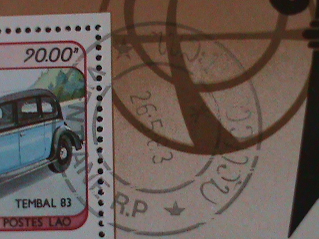 Laos-1983-sc#466 tembal'83-world stamp show-basel-cto s/s vf last one fancy cancelCto sheet with first day of issued fancy postal cancel, like mint condition hard to find