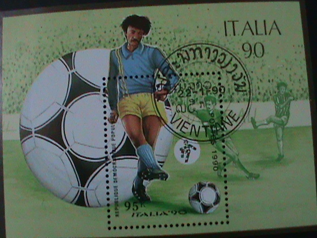 LAOS--SC#1004 WORLD CUP SOCCER ITALIA'90 CTO S/S VF LAST ONE FANCY CANCEL