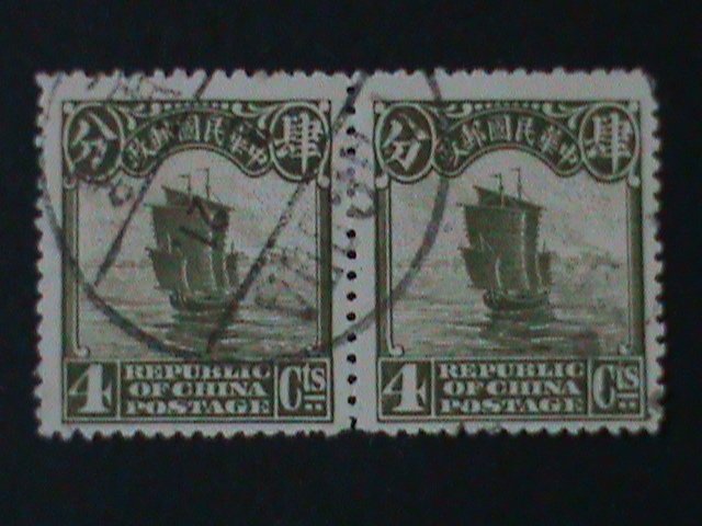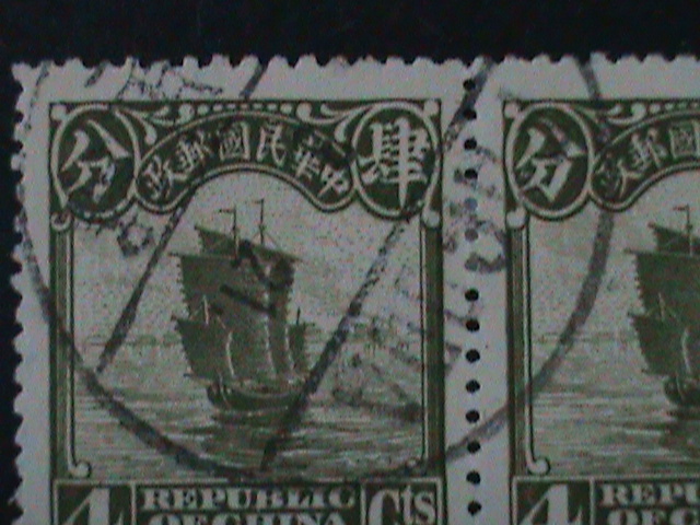 CHINA-1913-SC#206-CHINA JUNK- PAIR FANCY CANCEL VF101 YEARS OLD LAST ONE
