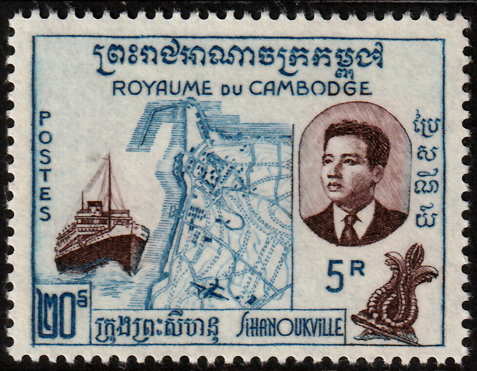 ️ CAMBODIA 1960 - PORT SIHANOUK SHIP ERROR ២០ Sc. 77a Mi. 99I MNH ** [1KHP099]