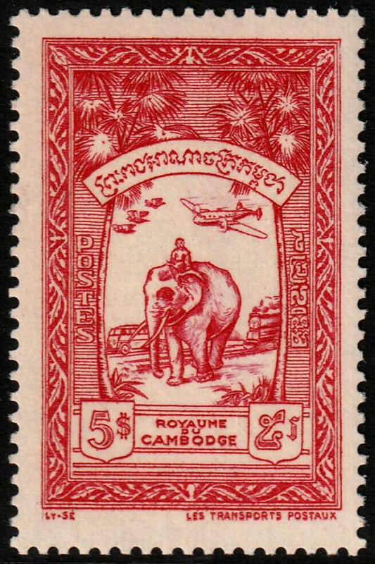 ️ CAMBODIA 1954 - AIRPLANE OVER ELEPHANT - SC. 32 MNH ** [1KH045]
