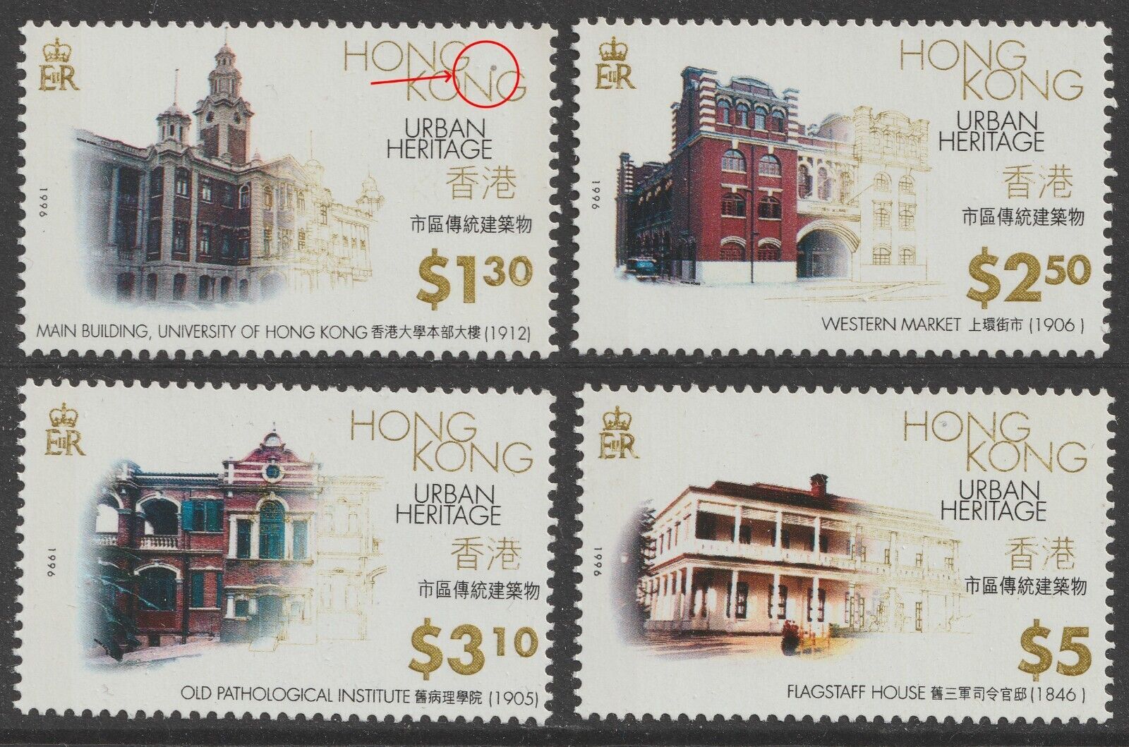Hong Kong 1996 Urban Heritage 市區傳統建築 set 4 (not perfect, see pic) MNH