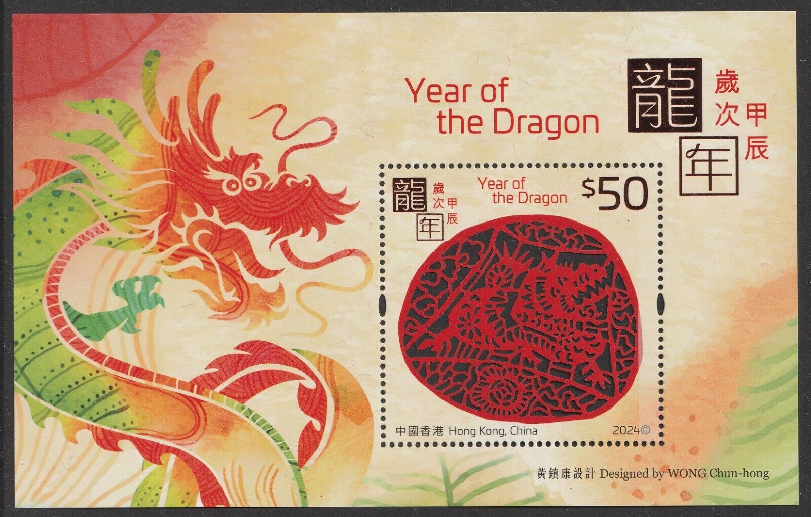 Hong Kong 2024 Lunar New Year Dragon 龍年 $50 sheetlet MNH