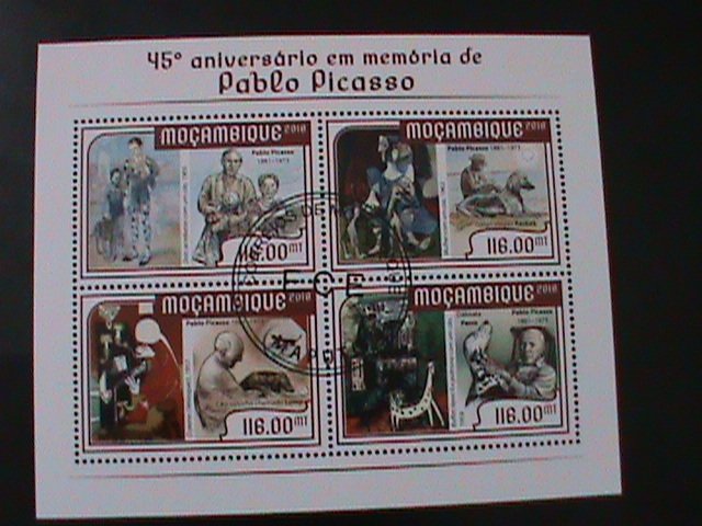 Mozambique-2018-promote-pablo picasso & paintings-cto vf -est.$14-last oneCto sheet with original gum-fancy postal cancel-like mint condition hard to find