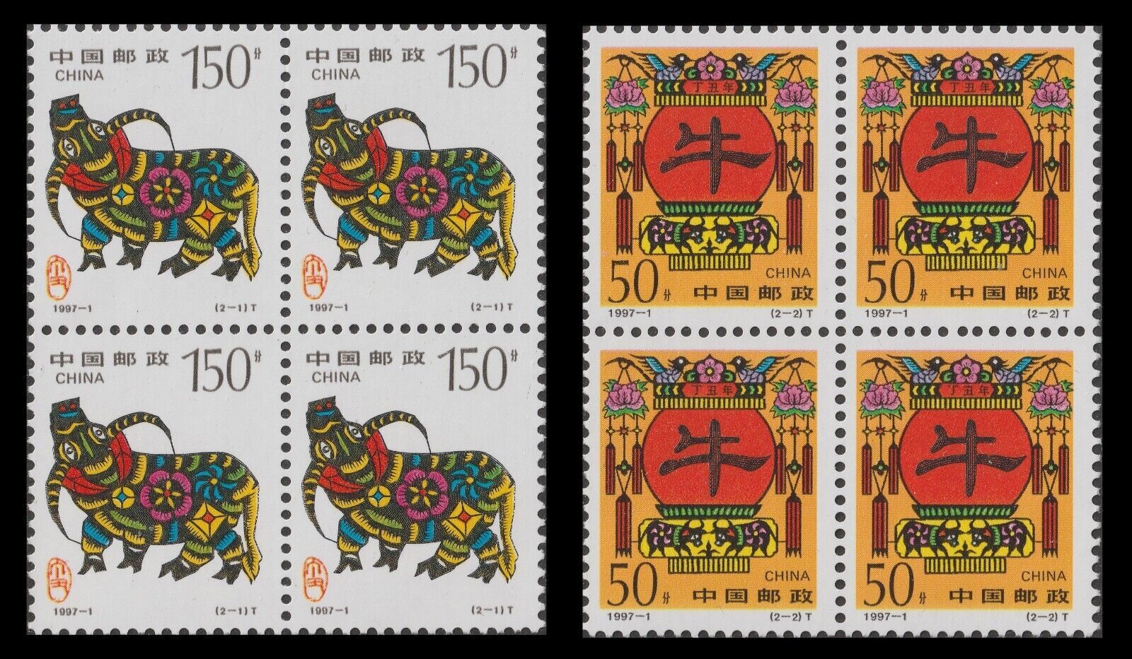 China 1997-1 Lunar New Year Ox 牛年 block set 2x4 MNH
