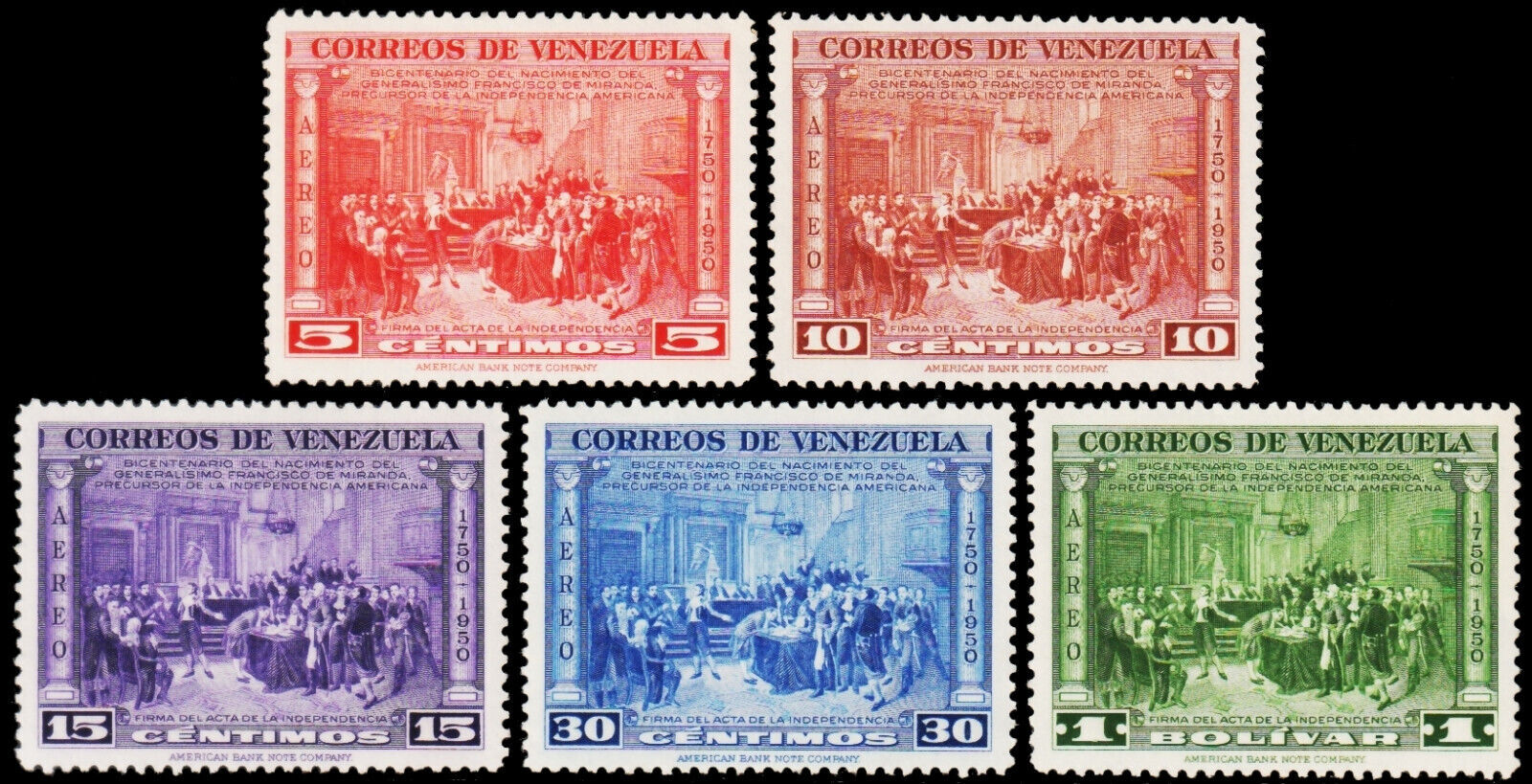 ️ VENEZUELA 1950 - FRANCISCO DE MIRANDA BICENTENARY - SC. C311/315 MNH **