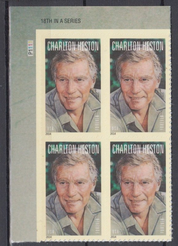 USA Sc#4892 Legends of Hollywood Charlton Heston Plate Block of 4 MNH