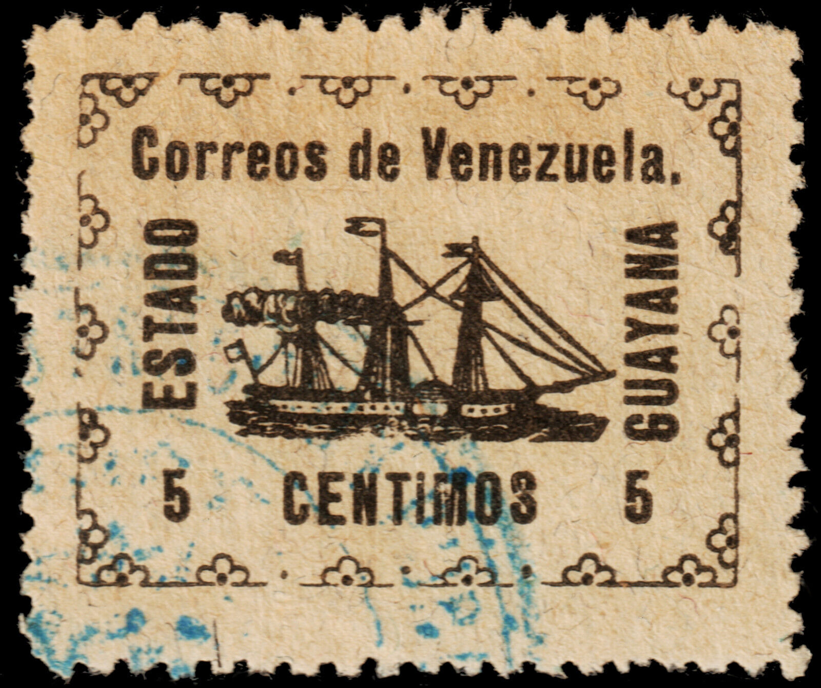 ️ VENEZUELA 1903 - ESTADO DE GUAYANA & STEAMER SHIP - SC. 1 CONTROLMARK OR USED