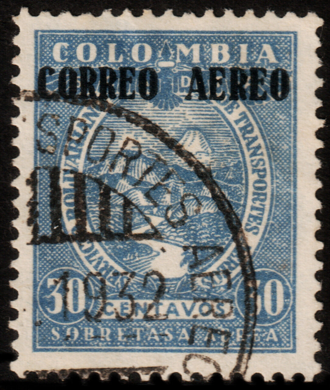 ️ COLOMBIA 1932 - AIRMAIL MAGDALENA RIVER & VULCANO - SC. C87 (o)