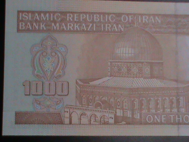 Iran-1992-cat #139143-central bank of iran -1000 rials- uncirculated vf-last one hard to findDone of the rock in jerusalem on the back at center-water mark mohd. A. Fahmideh