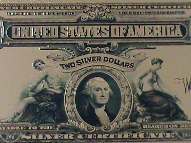 United states-1899 cat.#339- 24 karat gold replica $2 -vf with certificate-126-years old-est. $45 24 karat gold replica bank note in certificate of authenticity sleeve-with a golden ceritficate card High technical ... Read More