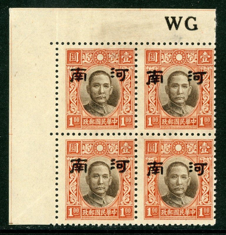 China 1942 Japan Occ Honan $1.00 Small OP Die 2 Corner Block F986 ️