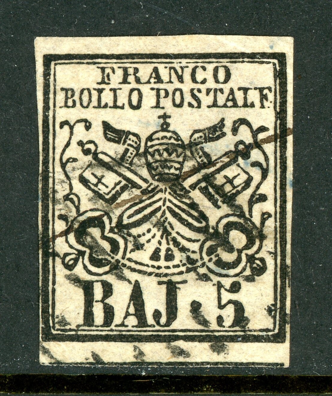 Italy 1852 Roman States 5¢ Rose Scott #6 VFU T749