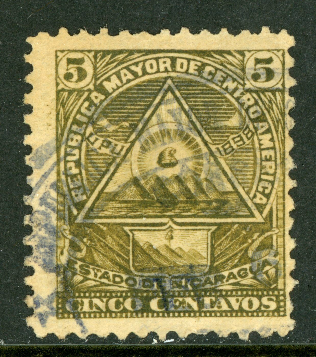 Nicaragua 1896 Seebeck 5¢ Coat of Arms Unwmk Postally Used B859
