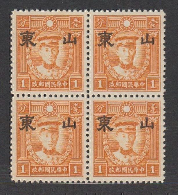 JapOcc Shantung 1941 Large 山東 Opt on HK Print Martyr (1c UnWmked, B/4) MNH