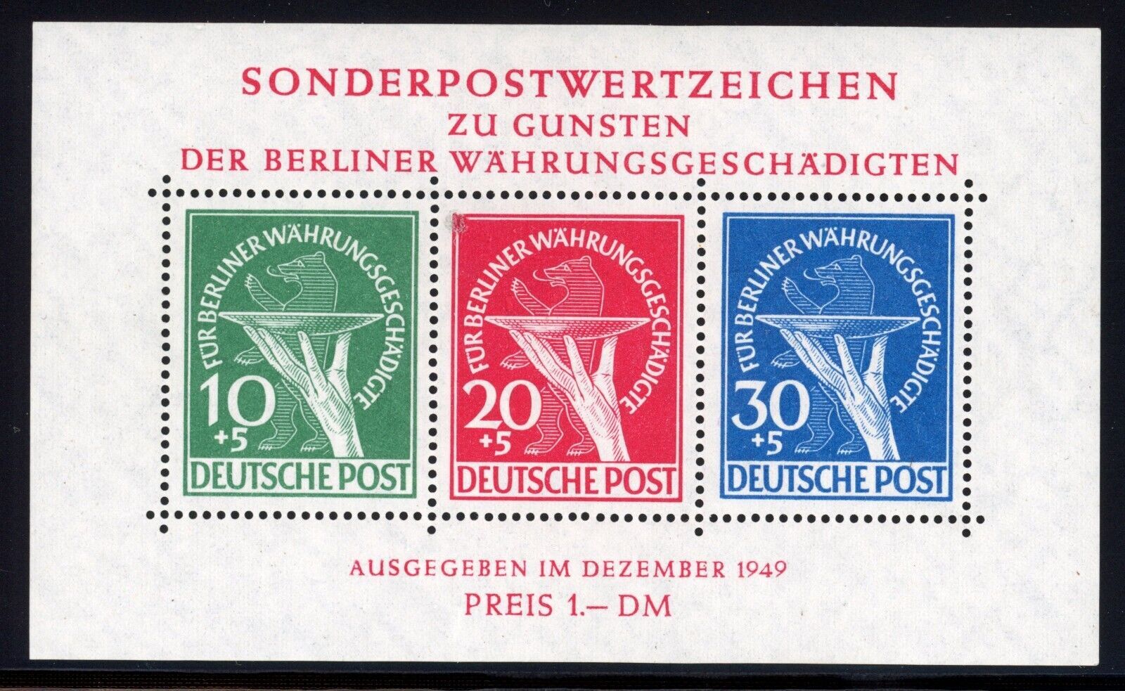 Germany Berlin 1949 Berlin Bear Souvenir Sheet Sc# 9NB3a Mint XF OG NH Pristine