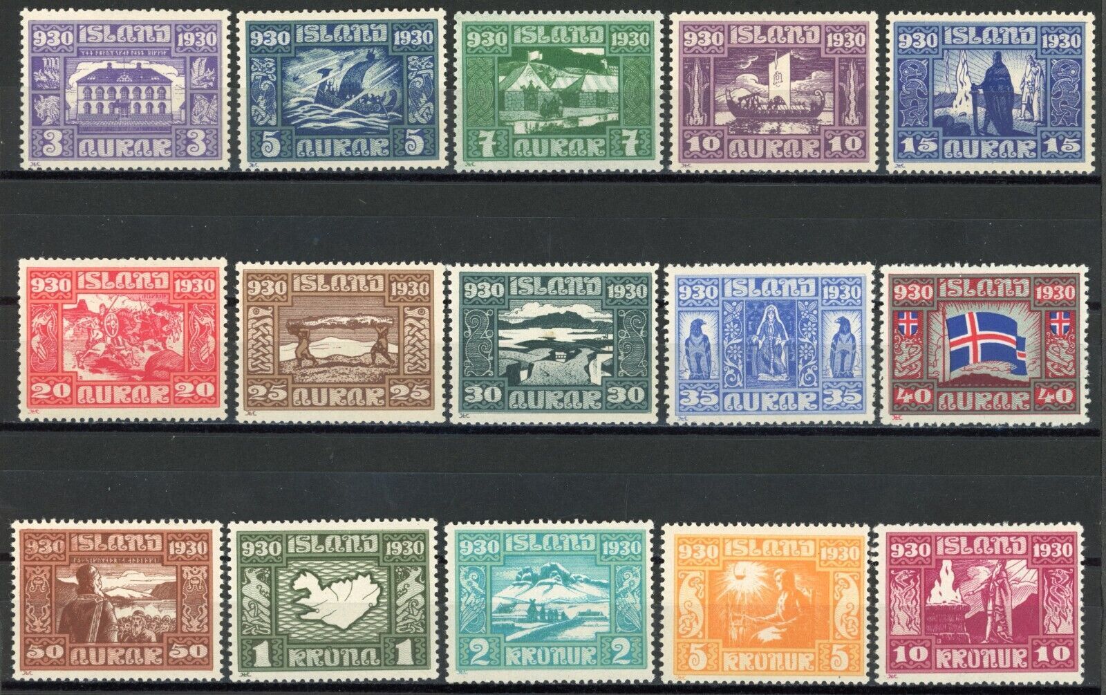 Condition: Mint Original Gum Lightly Hinged Grade: VF (Very Fine) This Scarce Icelandic Parliament Millenary Commemorative Complete Set of Stamps is a gem from the 1930s. With a Mint Original Gum Lightly Hinged/M ... Read More