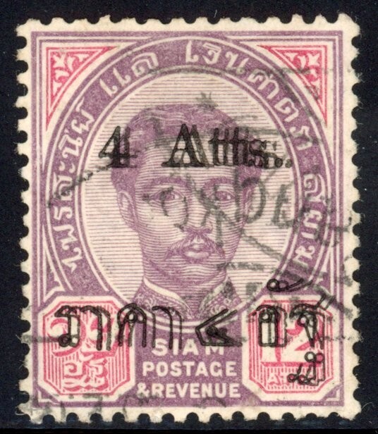 Thailand 1898 RARE DOUBLE SURCHARGE Sc# 62a Very Fine Used Extremely Scarce Gem