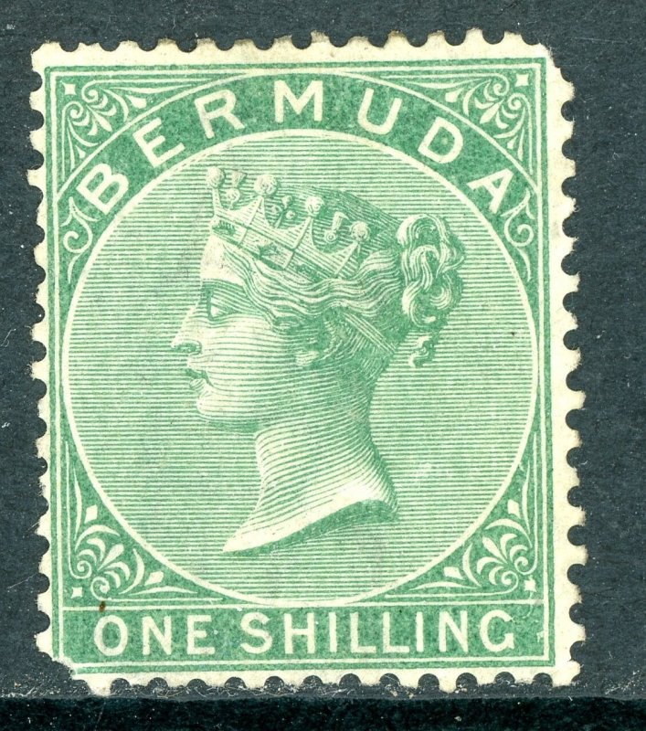 Bermuda 1865 QV 1 Shilling Green Wmk CCC P14 Scott #6 Mint U763