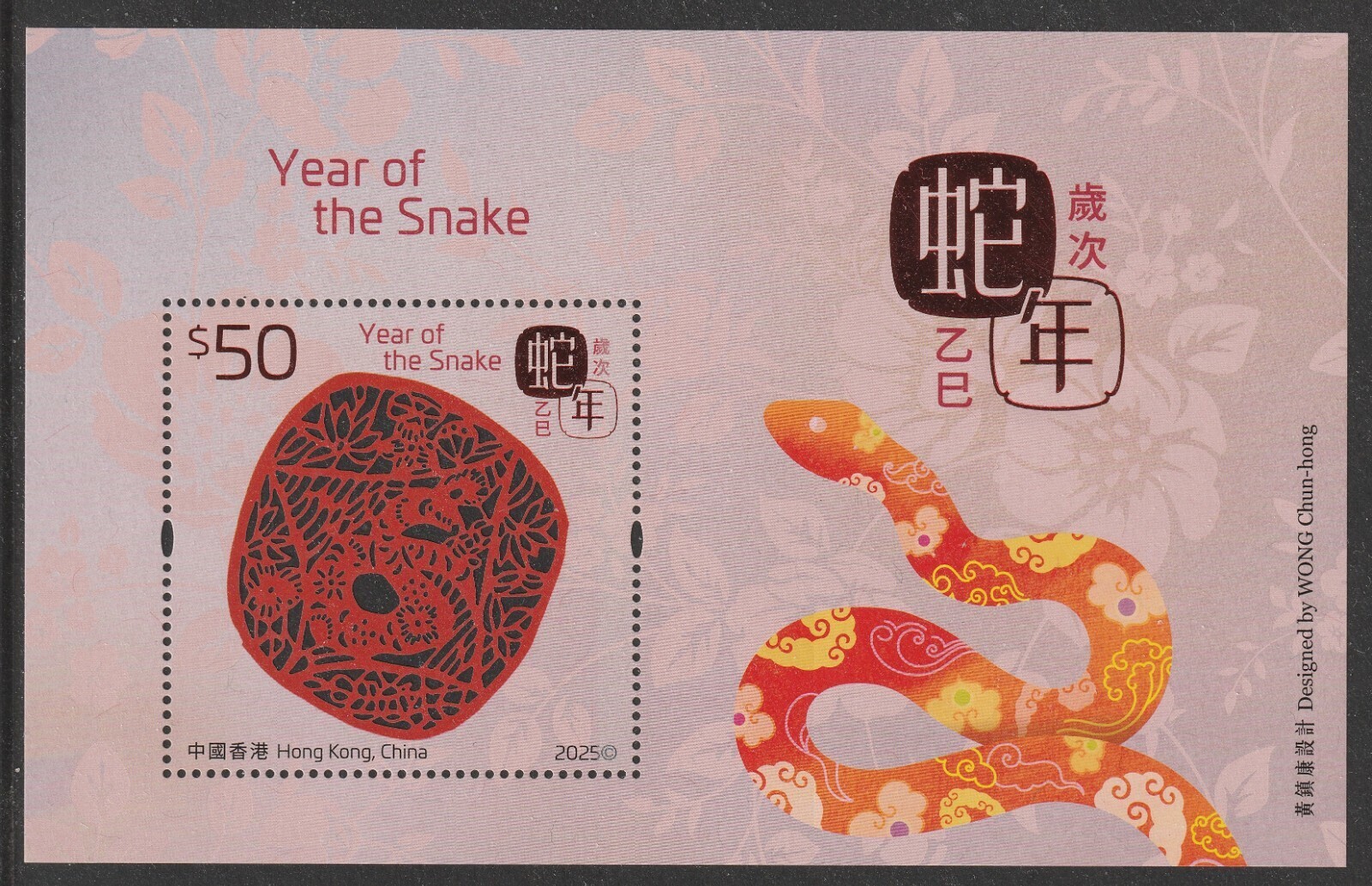 Hong Kong 2025 Lunar New Year Snake 蛇年 $50 sheetlet MNH