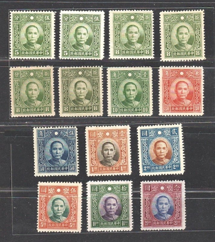 China 1940 Dah Tung Print SYS 大東版孫像票 (11v Cpt + 8c Shade & 2 No star) MVLH