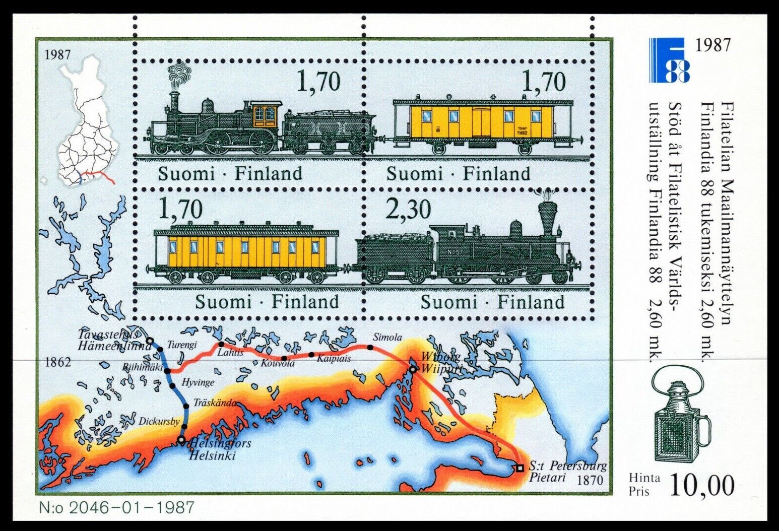 Finland 1987 Stamp exhibition Trains, Railways Mint never hinged **