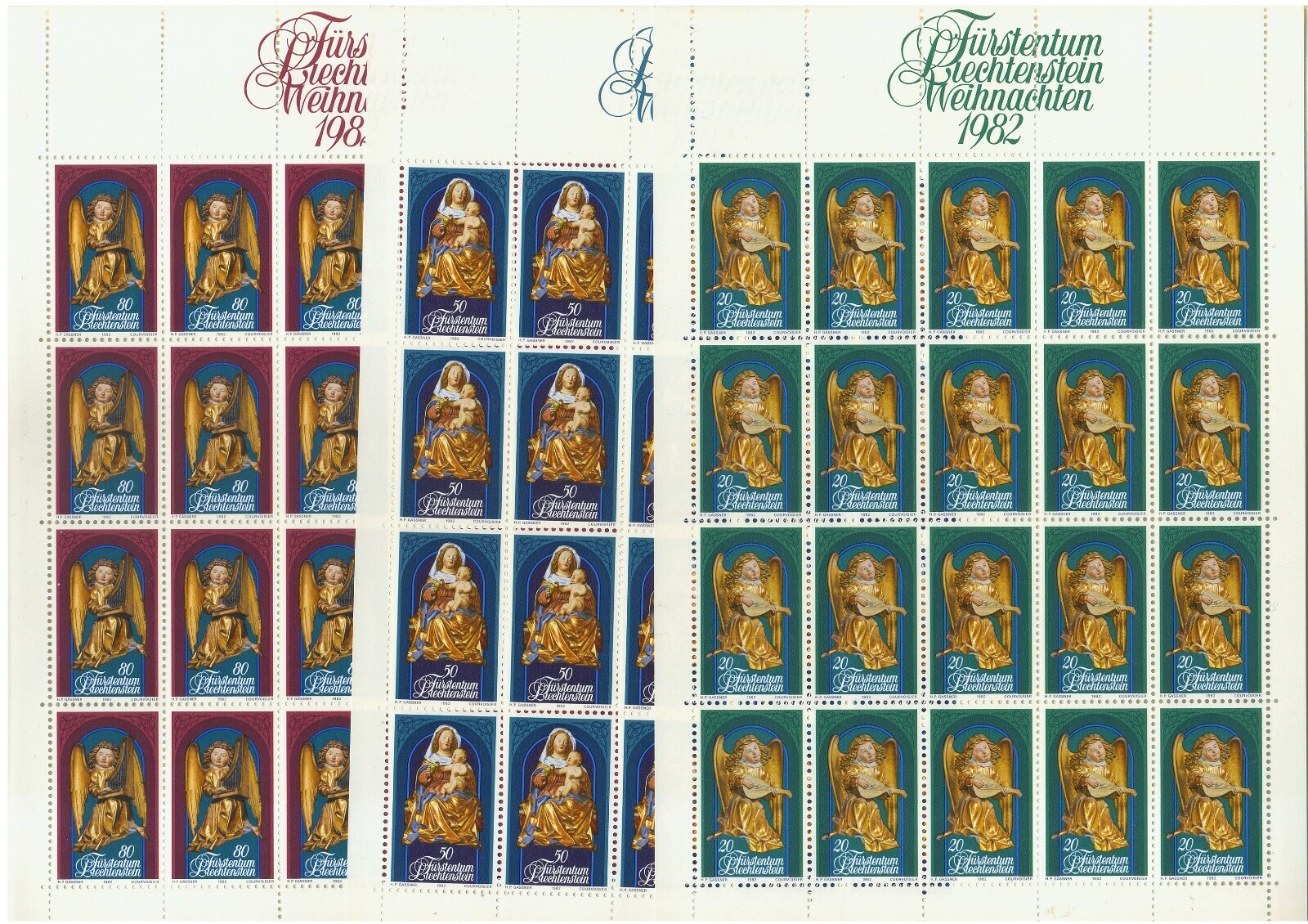 Liechtenstein 1982 Art / Christmas 3v - Full Sheet of 20 MNH **