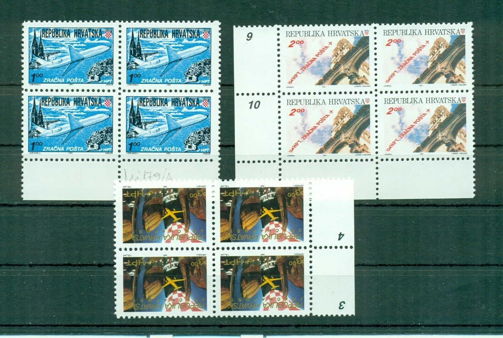 Croatia 1991 Air mail - 3v set Mi 179/181 MNH**