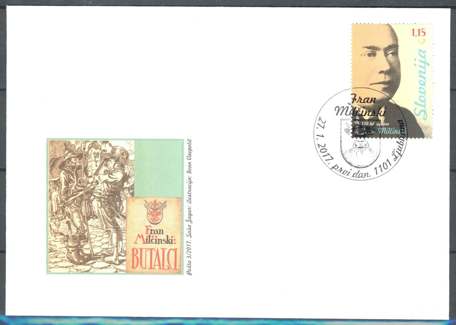 Slovenia 2017 150th Ann. of the Birth of Fran Milcinski, Writer FDC