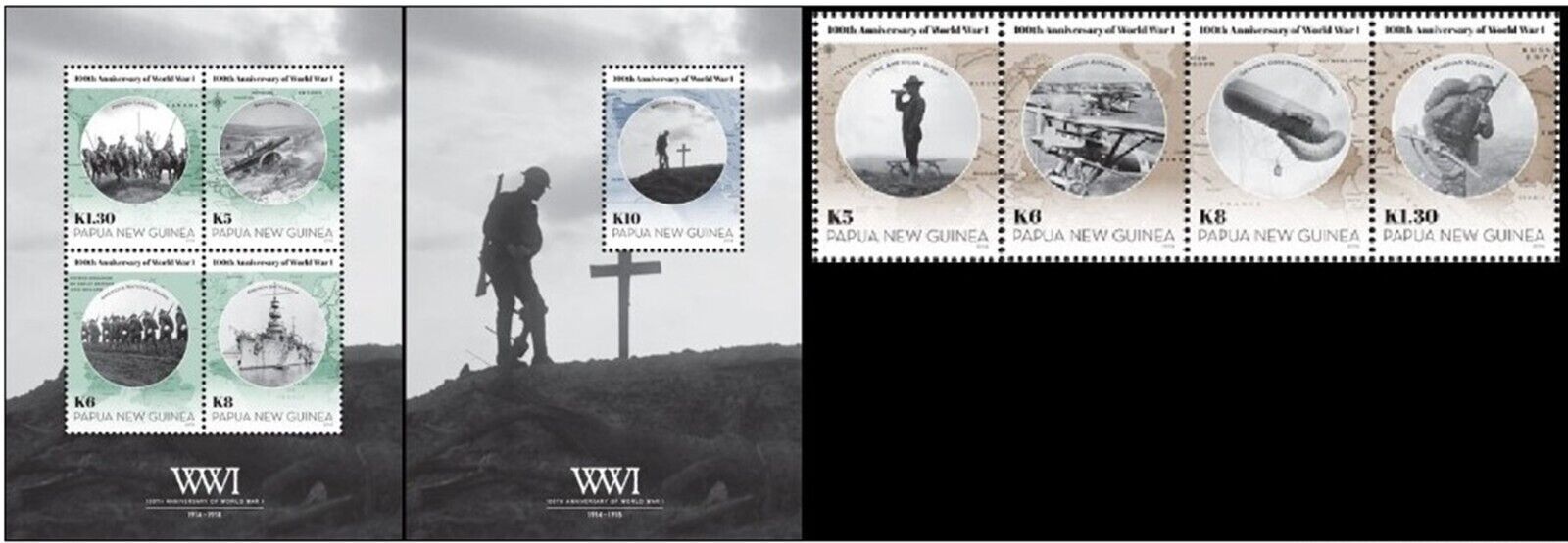 Papua New Guinea 2014 100th First war world Set + MSS MNH**