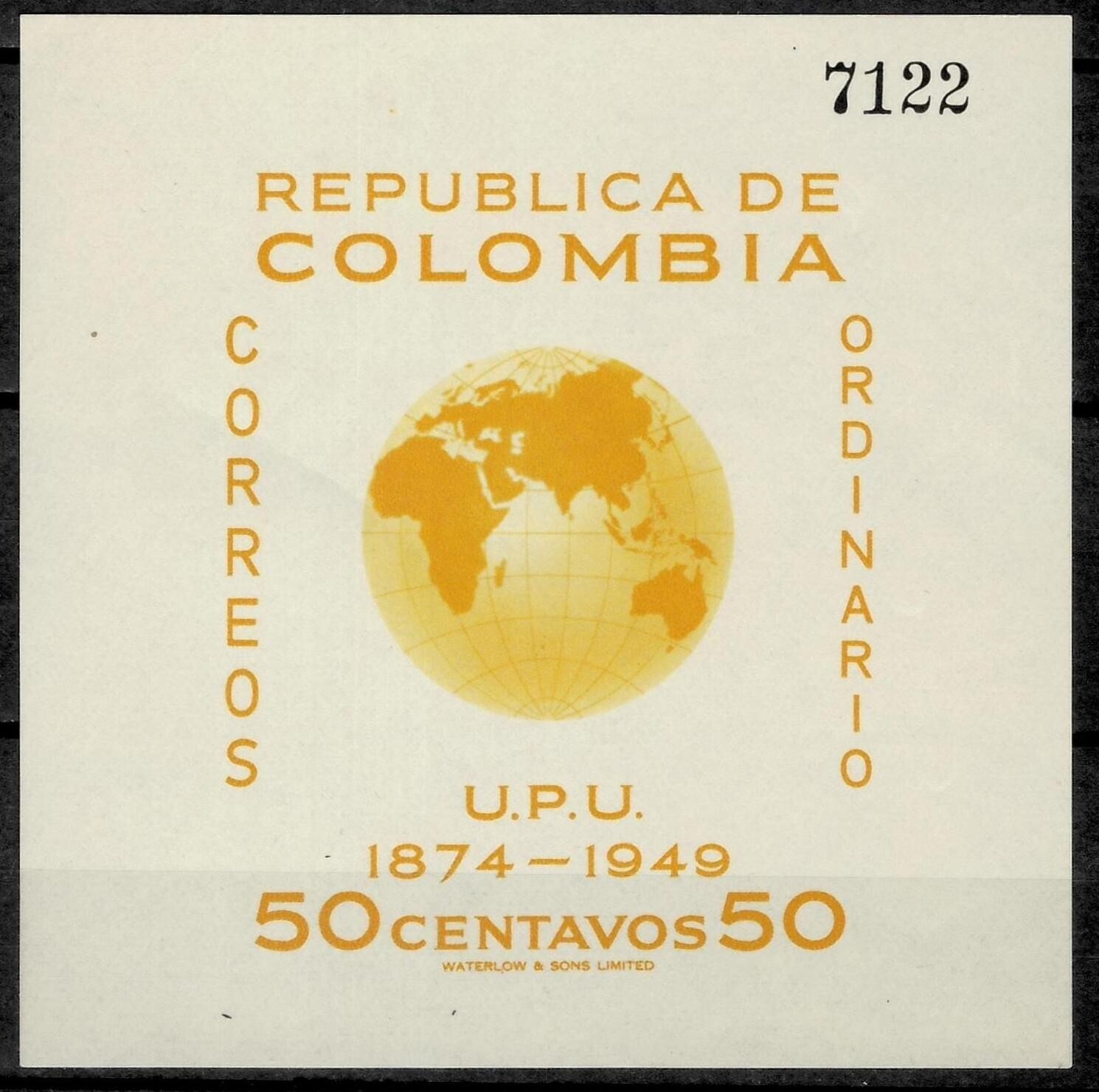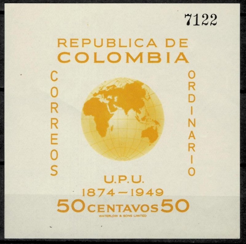 Colombia 1950 Anniversary of UPU MSS SG MS728 MNH (**)