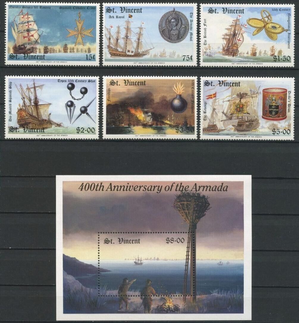 St. Vincent 1988 400th Anniv Destruction Spanish Armada Ships MS / MNH **