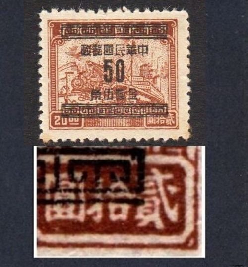 China 1949 Large Surcharge on Rev with "Short hook 貳"字短勾(Chan# G82f) MNH