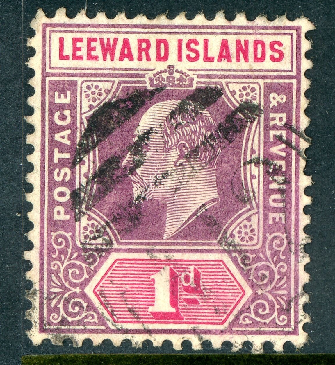 Leeward Islands 1906 British KEVII 1p Violet & Carmine Rose Sc #30 VFU R920