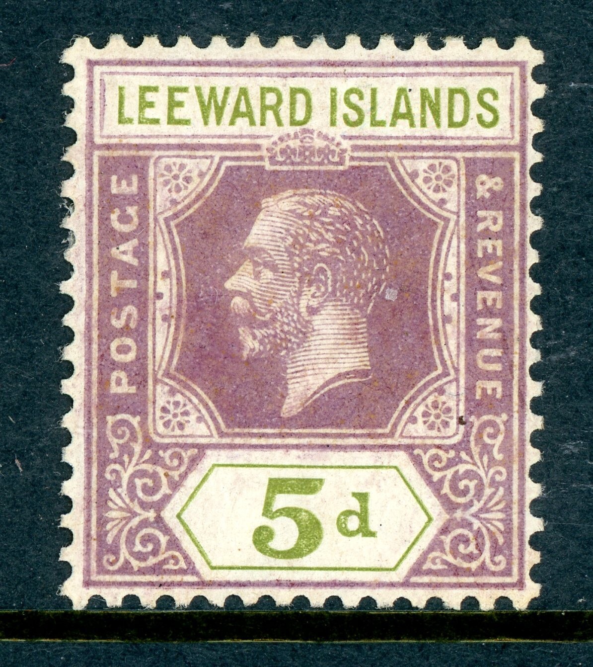 Leeward Islands 1922 British KGV 5p Violet & Olive Grn Scott #74 Mint R956