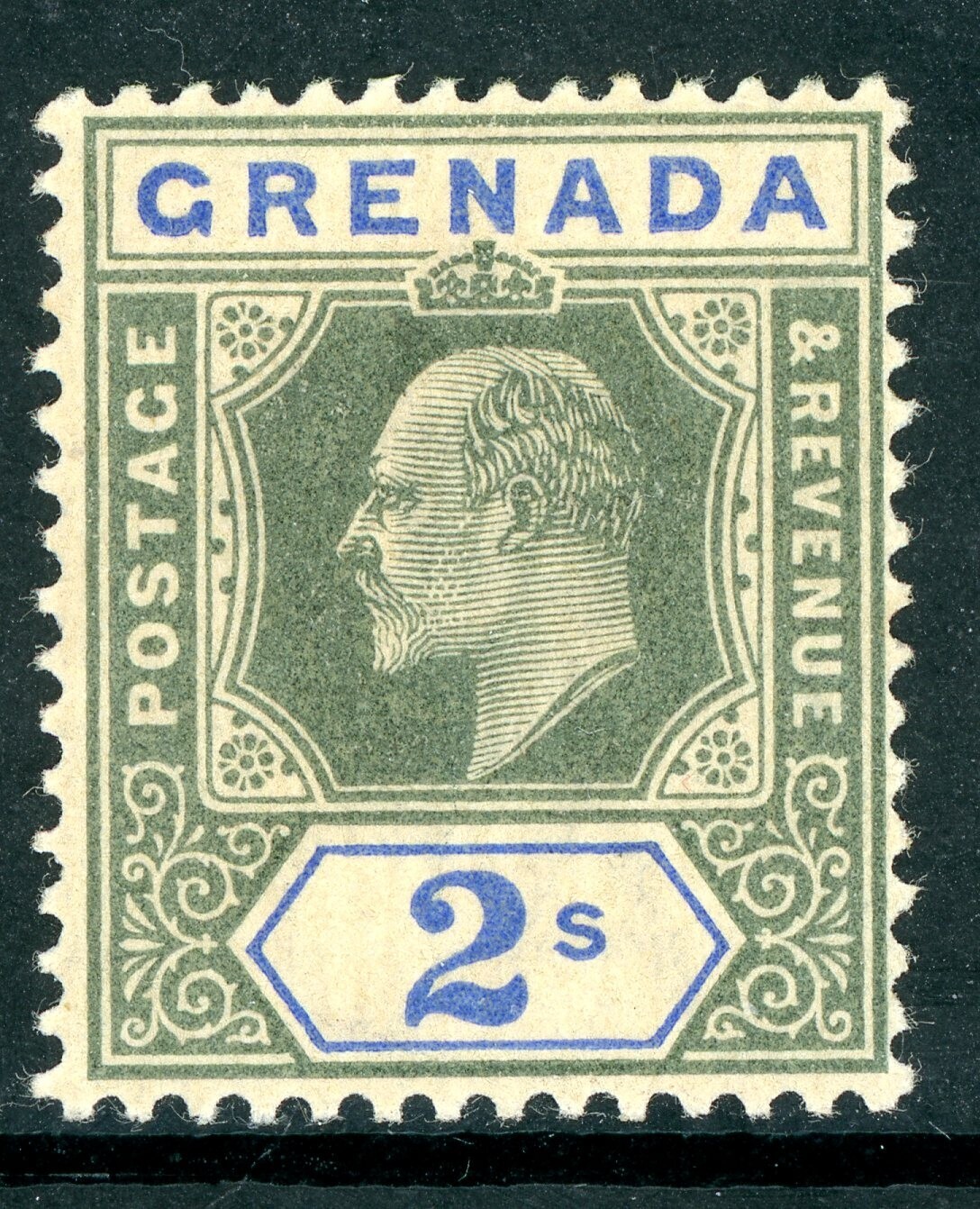 Grenada 1902 British KGV 2 Shillings Green & Ultra Scott #55 Mint U839