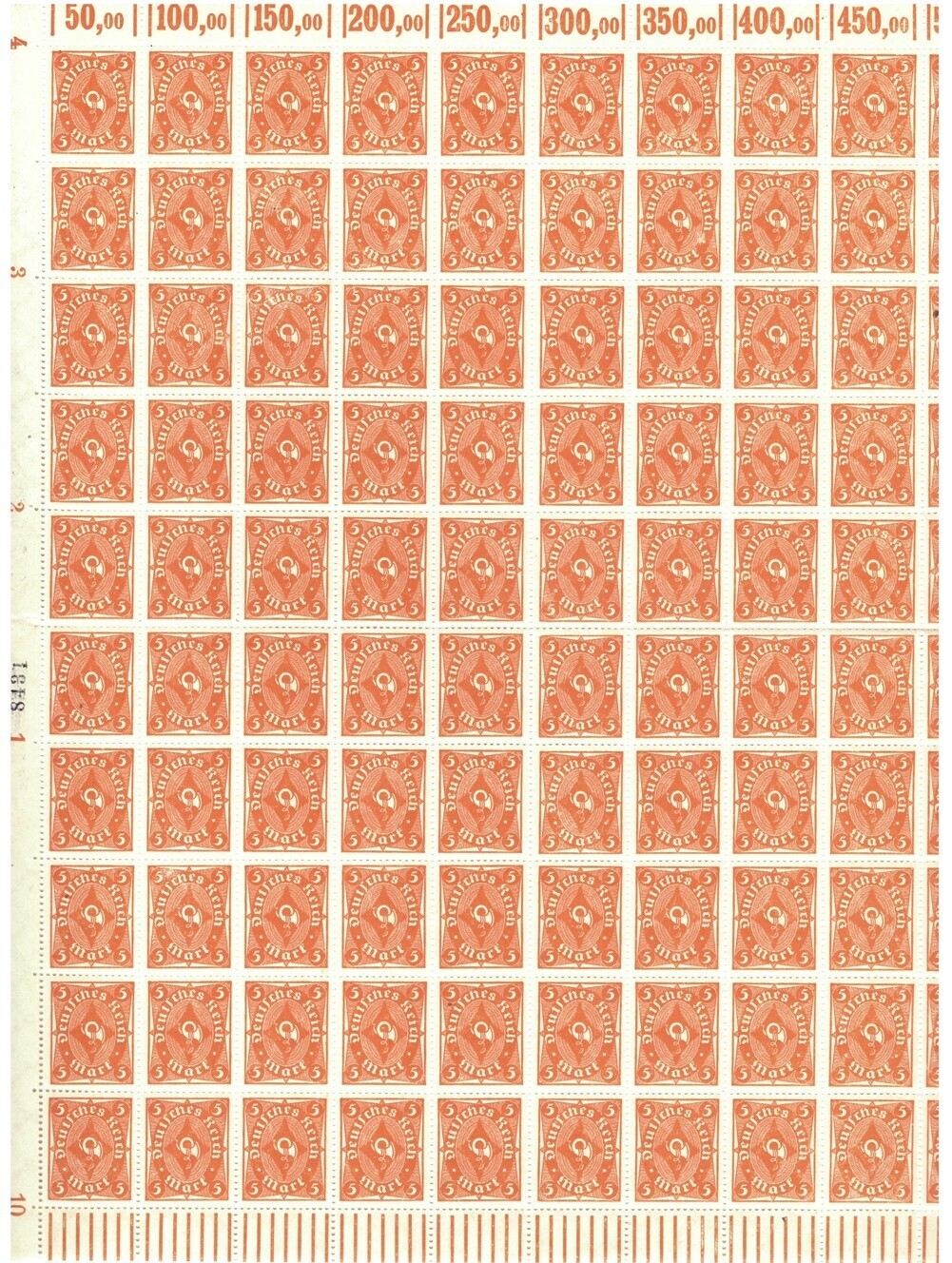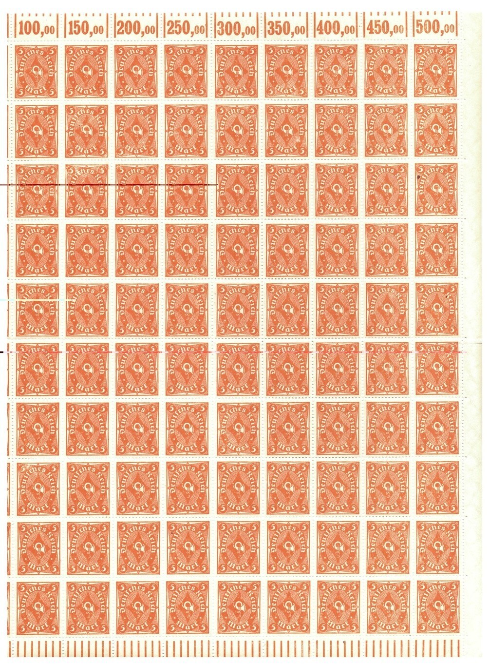 Deutsche Reich 1922 5m Mark full sheet MiNr. 227, S/S (10x10) MNH(**)