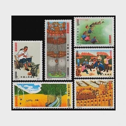 China 1974 T3 Paintings by Peasants of Huxian County 戶縣農民畫 Complete 6V mnh