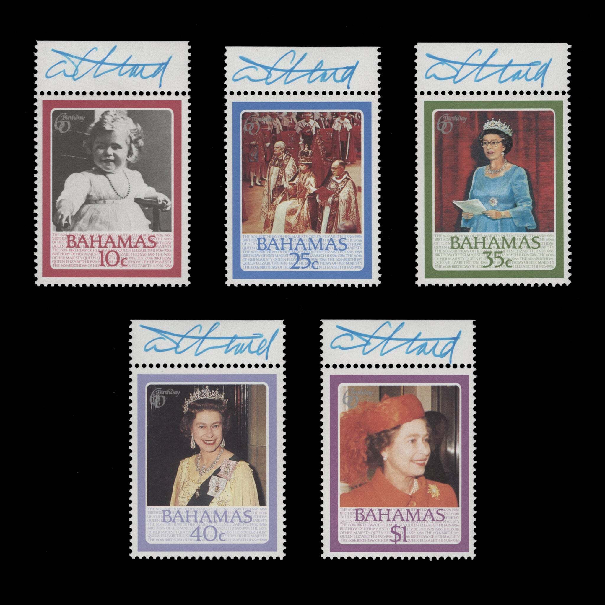 Bahamas 1986 Queen Elizabeth II's Birthday singles signed by Tony Theobald ️