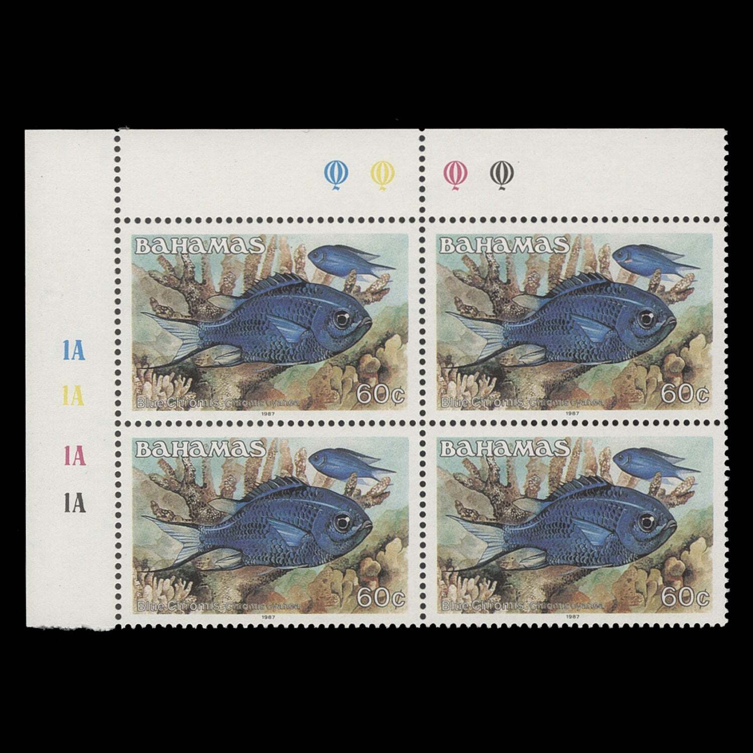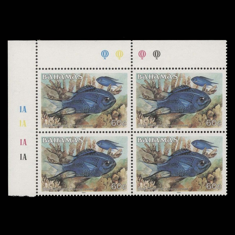 Bahamas 1987 (MNH) 60c Blue Chromis traffic light/plate 1A–1A–1A–1A block ️