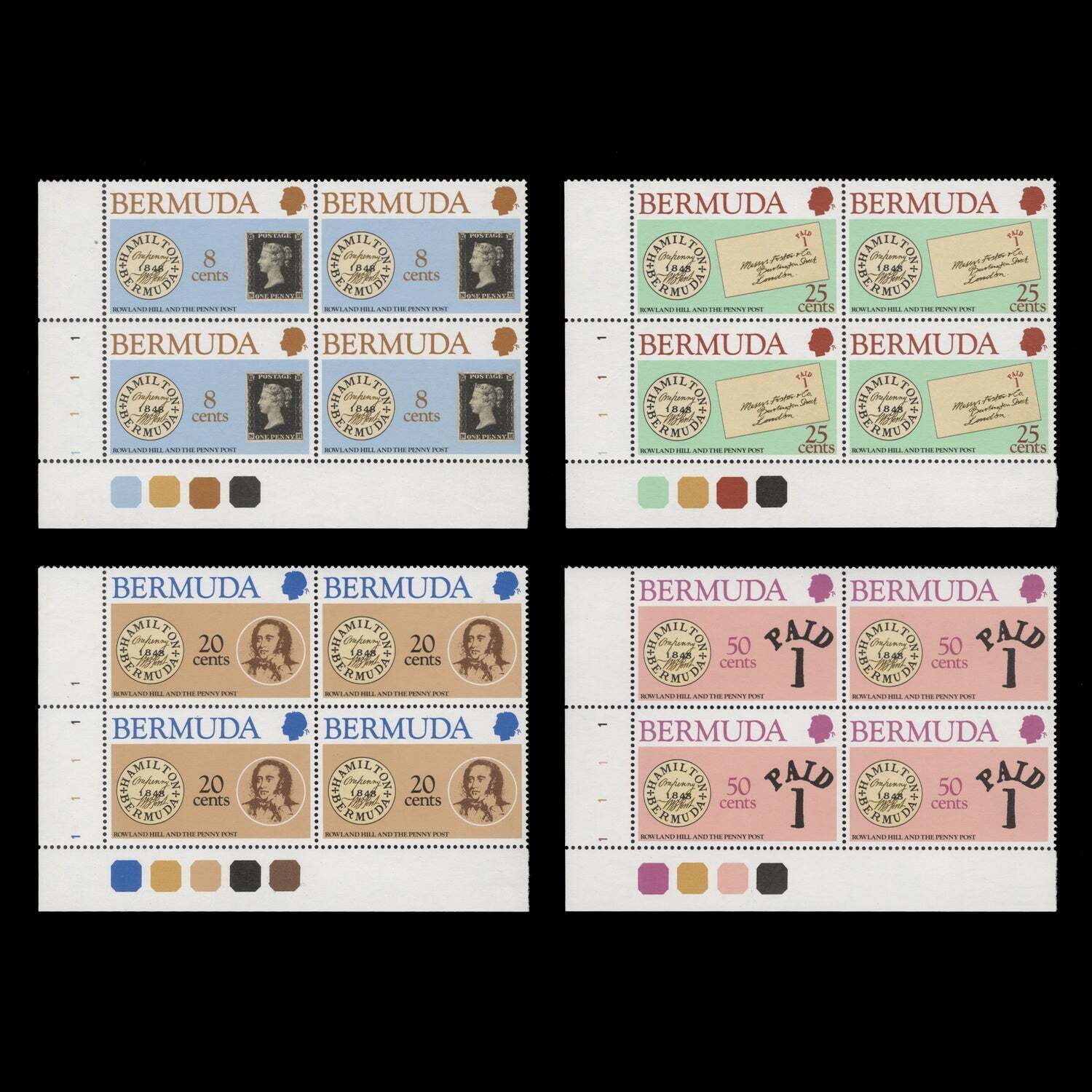 Bermuda 1980 (MNH) Rowland Hill Death Centenary plate blocks ️