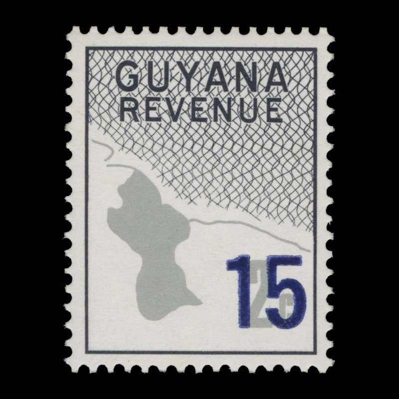15c/2c Map of Guyana single missing 'ESSEQUIBO IS OURS' overprint and obliterating lines. Difficult. Fresh and fine. Mint never hinged. SG940a; SC501varOffers History