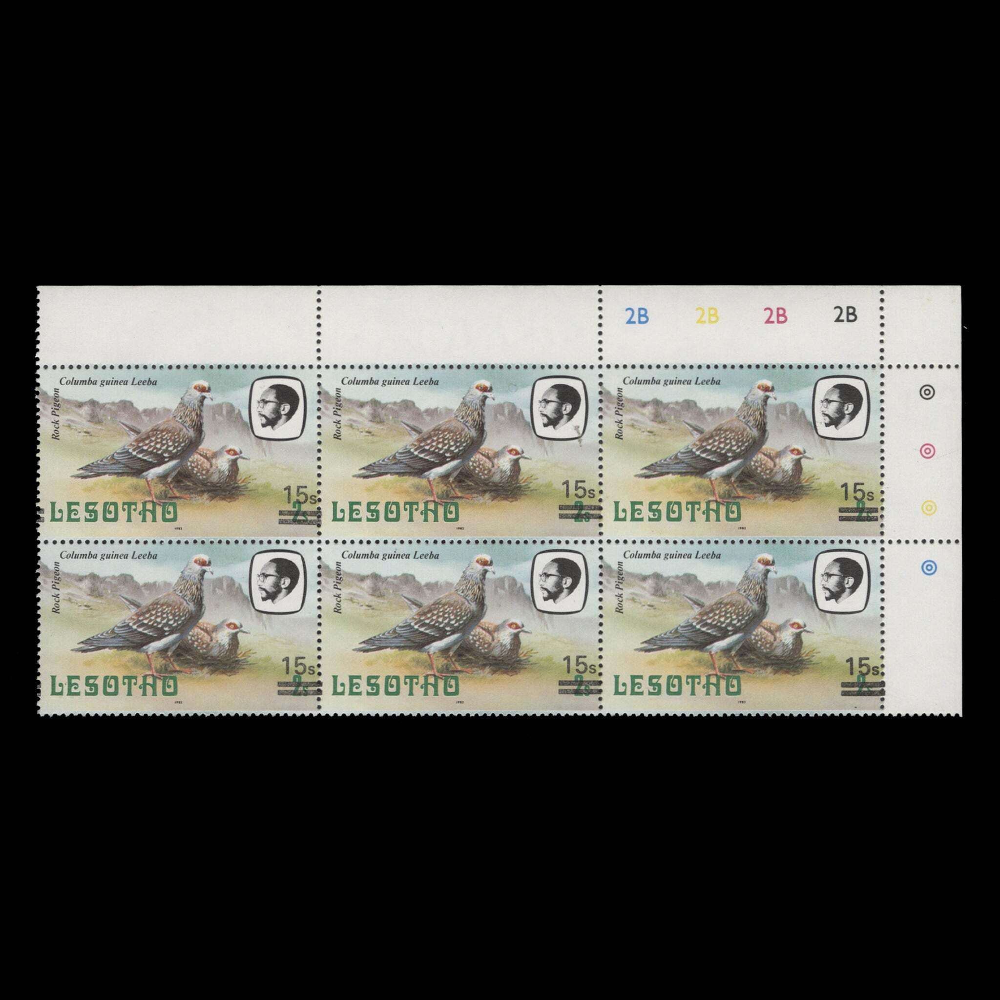 Lesotho 1986 (MNH) 15s/2s Rock Pigeon plate block, '1982' imprint ️