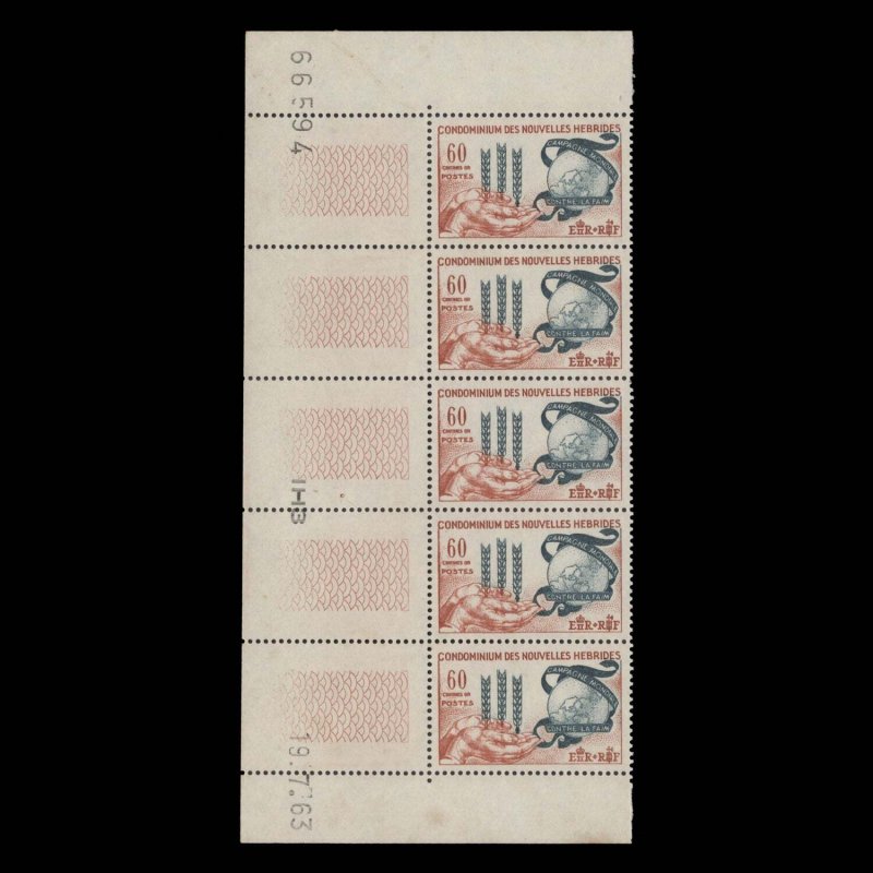 Nouvelles Hebrides 1963 (MNH) 60c Freedom From Hunger strip ️