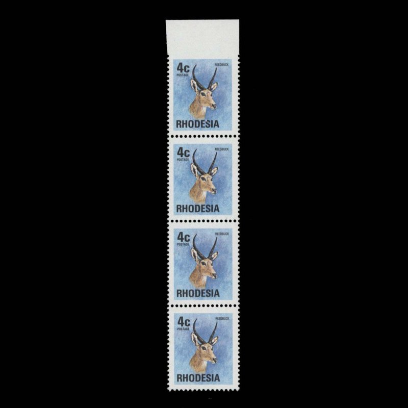 Rhodesia 1974 (Variety) 4c Reedbuck strip imperf to top margin ️