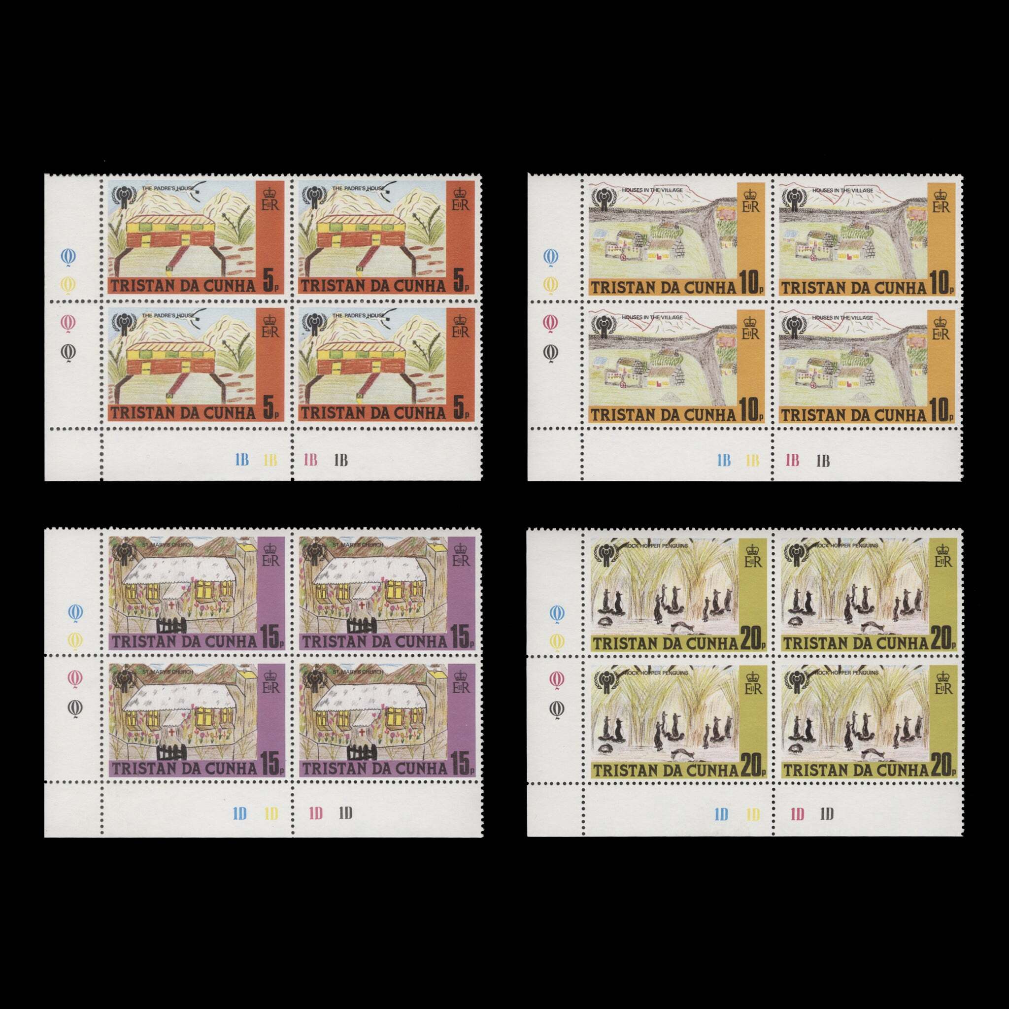 Tristan da Cunha 1979 (MNH) Year of the Child traffic light/plate blocks ️