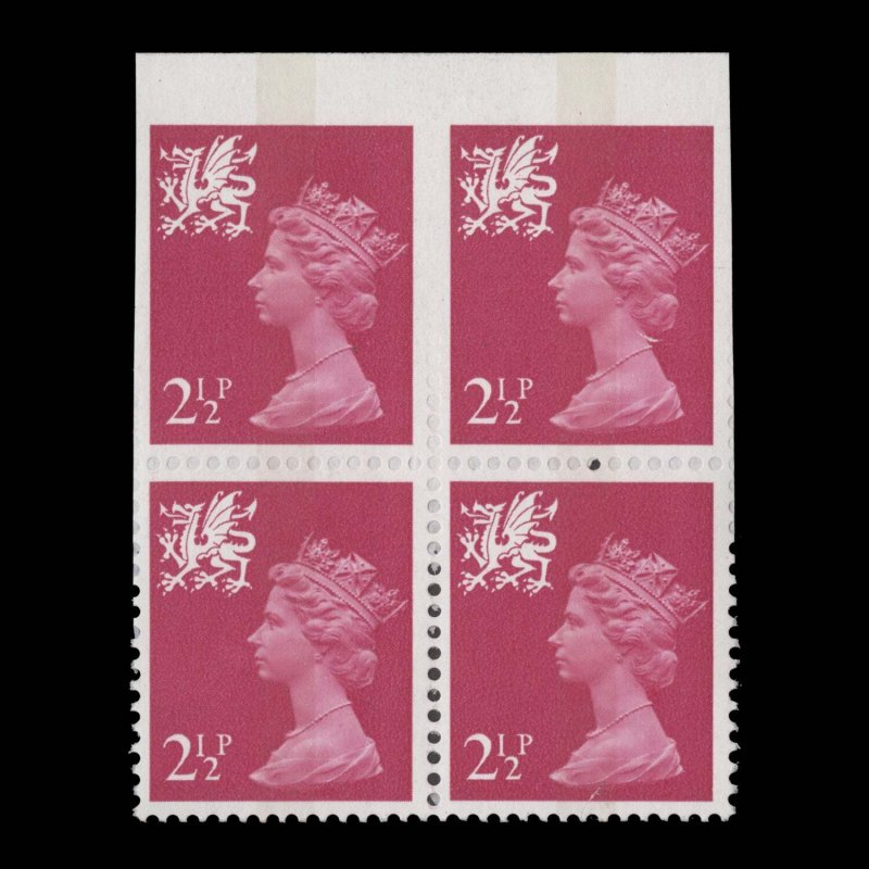 Wales 1972 (Variety) 2½p Bright Magenta block imperf top margin, gum arabic ️